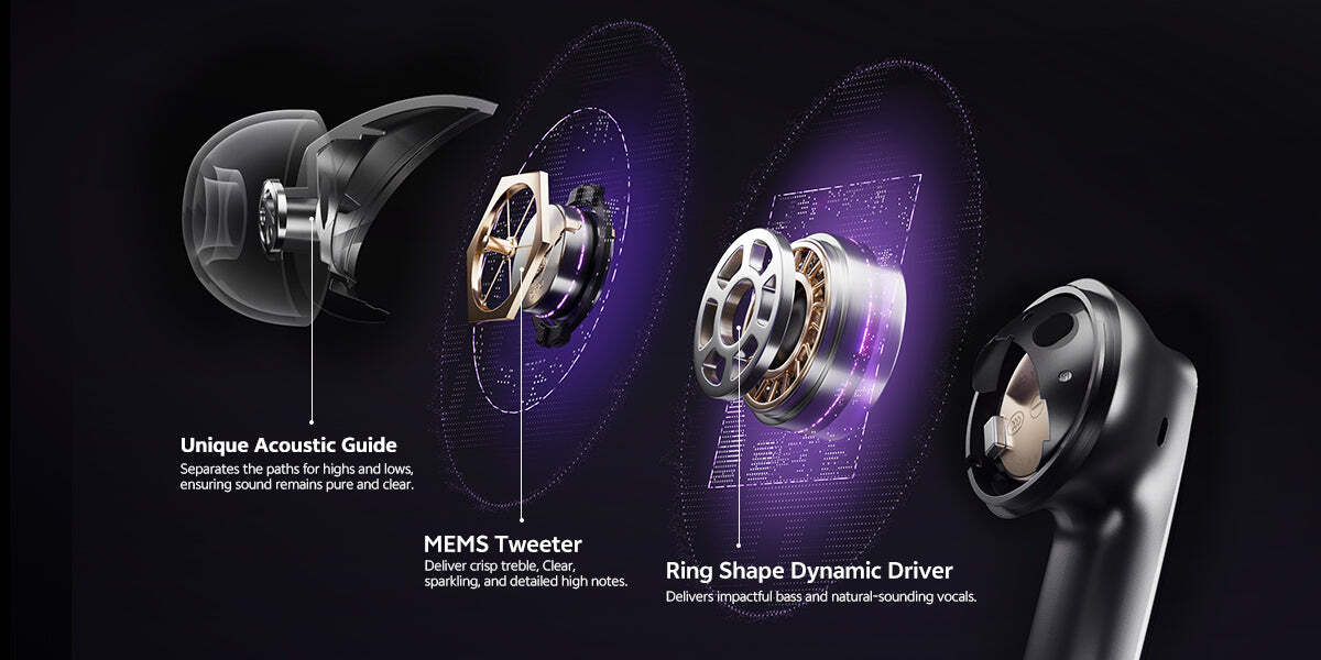Совместно с USound , ведущим поставщиком технологий MEMS (микроэлектромеханических систем) для акустических систем, мы с гордостью объявляем о том, что в MeloBuds N70 интегрирован MEMS-твитер от USound. Это достижение знаменует собой появление высококачественного звука без искажений, обеспечиваемого MEMS-динамиками, на массовом рынке потребительской аудиотехники.